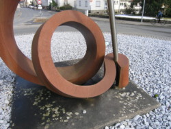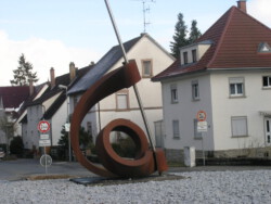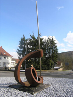 Nach einem Entwurf und Modell im Maßstab 1:10 des Bildhauers Kurt Grimm aus Kleinrinderfeld realisierten wir die Stahlplastik aus 4mm Stahlblech die eine Edelstahlstange fasst. Die Plastik steht im Zentrum eines Kreisverkehrs in Tauberbischofsheim.