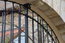 Durch eine Havarie mit einem Baustellenfahrzeug wurde der barocke Sandsteintorbogen zum ehemaligen Langenzenner Spital schwer beschädigt. Im Zuge der Wiederherstellung bekamen wir nach einem Ideenwettbewerb den Zuschlag zur Realisierung unseres Entwurfes für ein geschmiedetes Gittertor.