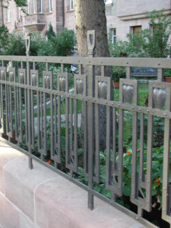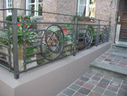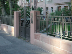 Im Jahr 2011 wurden wir mit der Restaurierung der geschmiedeten Außenanlagen des Anwesens Rennweg 64 in Nürnberg beauftragt. Der frühere Hauptzugang wurde reaktiviert. Neue Torraufhängungen gewährleisten eine maximale Durchgangsbreite zwischen den neu errichteten Pfeilern. Die historischen Zaun-, Tor- und Geländerelemente wurden sorgfältig restauriert, einzelne Felder rekonstruktiv ergänzt, nach Befund neu beschichtet und wieder eingebaut. Die neu angefertigte Seiteneingangstür zitiert einen historischen Torflügel und fügt sich harmonisch in das Gesamtbild ein. Die Außenanlage vermittelt jetzt in ihrer Gesamtheit wieder das ursprüngliche Erscheinungsbild. Im Frühjahr 2013 bekam sie die Denkmalprämierung des Bezirks Mittelfranken.